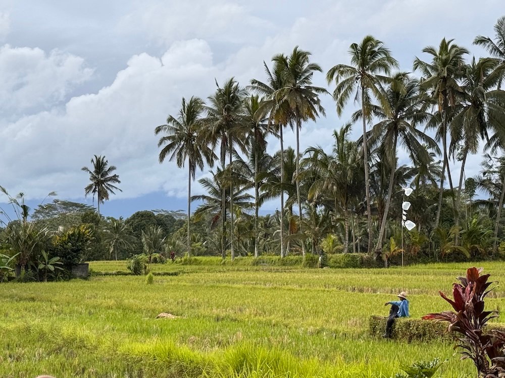 There was islands of jungle, then more rice, then some palm trees, then further off more rice, and Mount Agung in the distance.